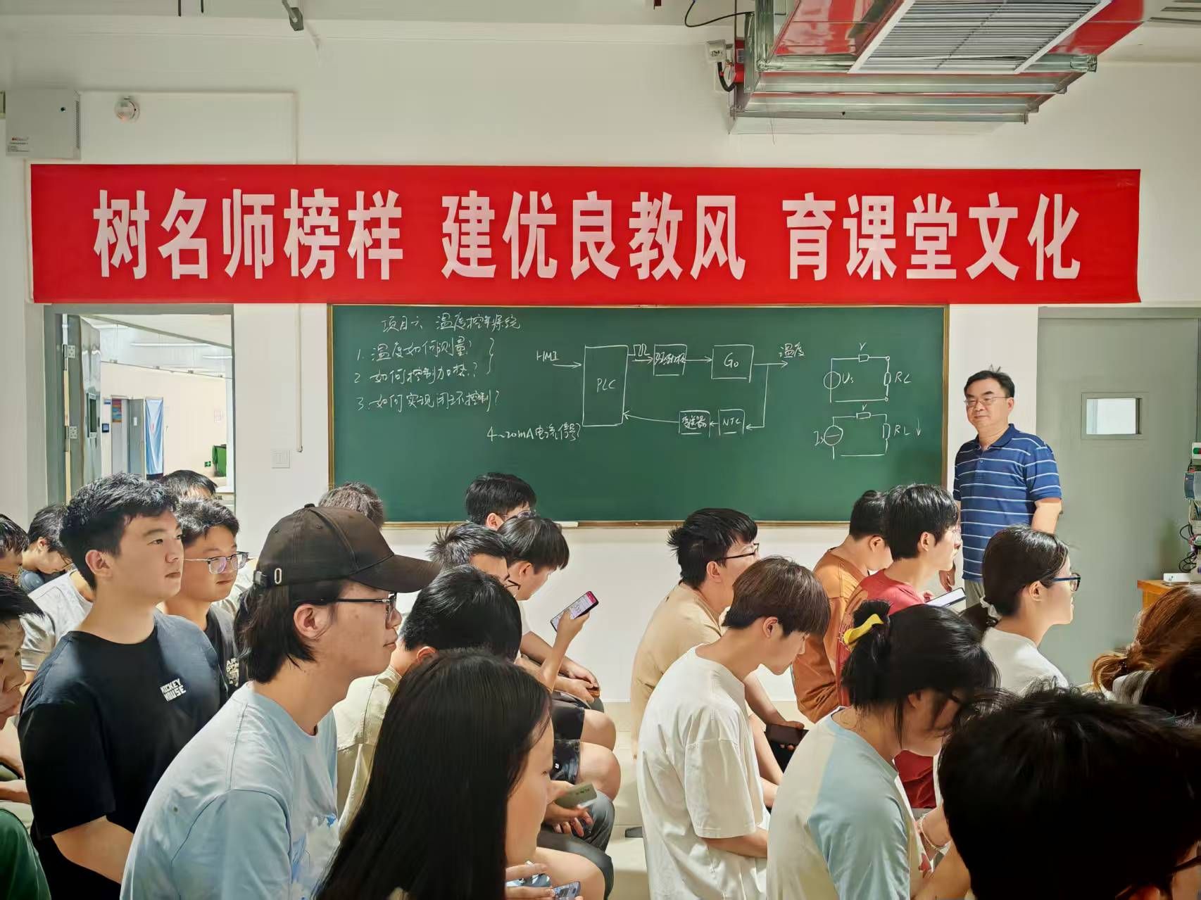 本次示范课上,李国柱开展了“温度控制系统设计”的项目案例教学。通过前测、随堂讨论、项目设计、结果展示和总结反思有序进行,展示了PLC处理模拟量和闭环温度控制的方法,分享了如何培养学生解决工程实际问题的能力,还通过思政元素引导学生了解工程伦理和工匠精神。观摩教师与李国柱老师进行了亲切交流。