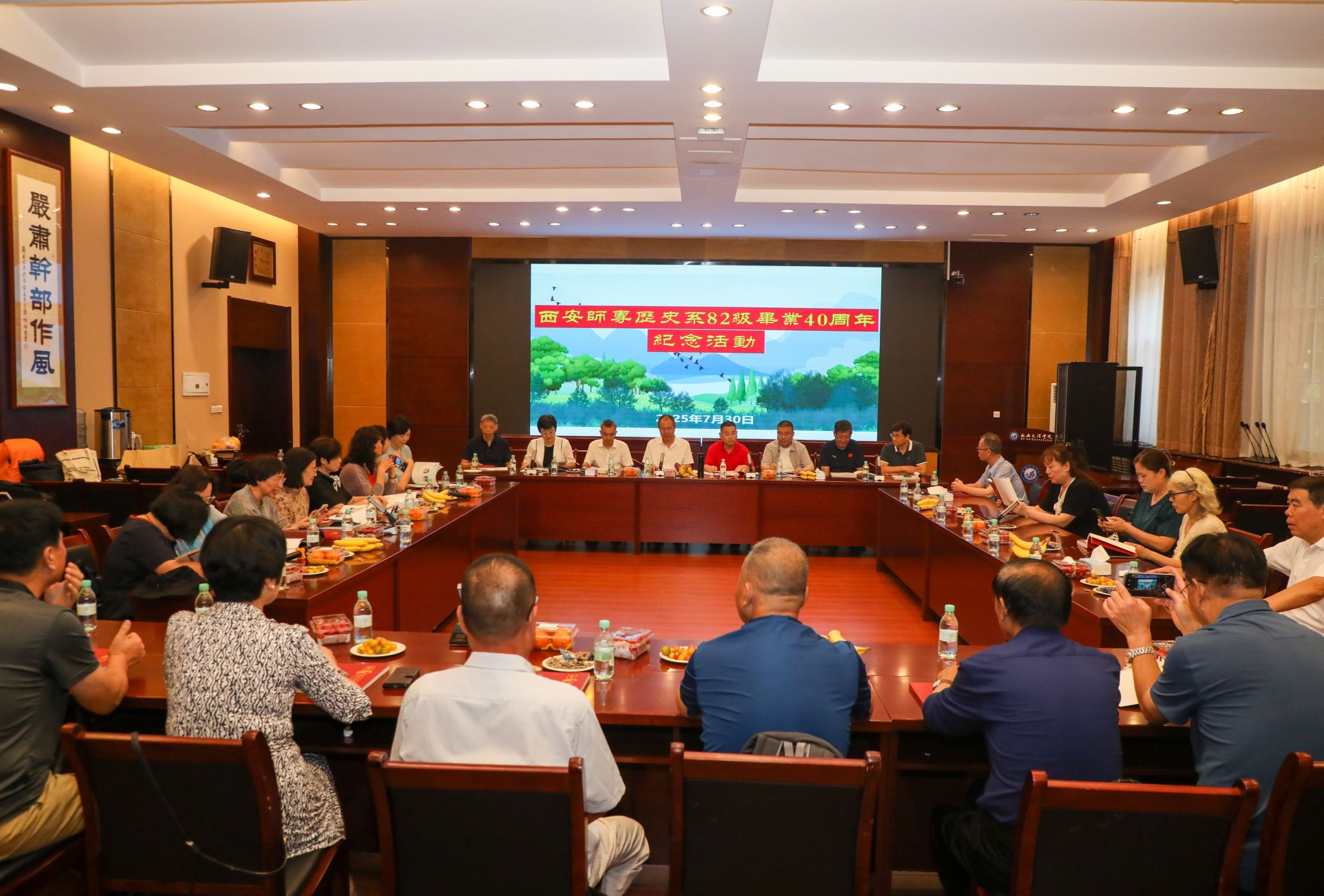 活动当日,校友们怀着激动的心情陆续抵达校园。座谈会由陕西省社科院原副院长杨辽(该班团支部书记)主持,西安市委党史研究室原二级巡视员龚建(该班班长)总结了历史82级同学毕业40年来在不同岗位上的工作和成就。学校服务地方办公室副主任铁煜对校友们的归来表示了热烈欢迎,并向校友们详细介绍了学校近年来在学科建设、人才培养、科学研究等方面取得的显著成就,以及未来的发展规划和愿景,希望校友们能为学校的发展建言献策。历史文化旅游学院院长崔林也介绍了历史专业发展情况,希望历史82级校友提供校外资源,促进学院快速发展。