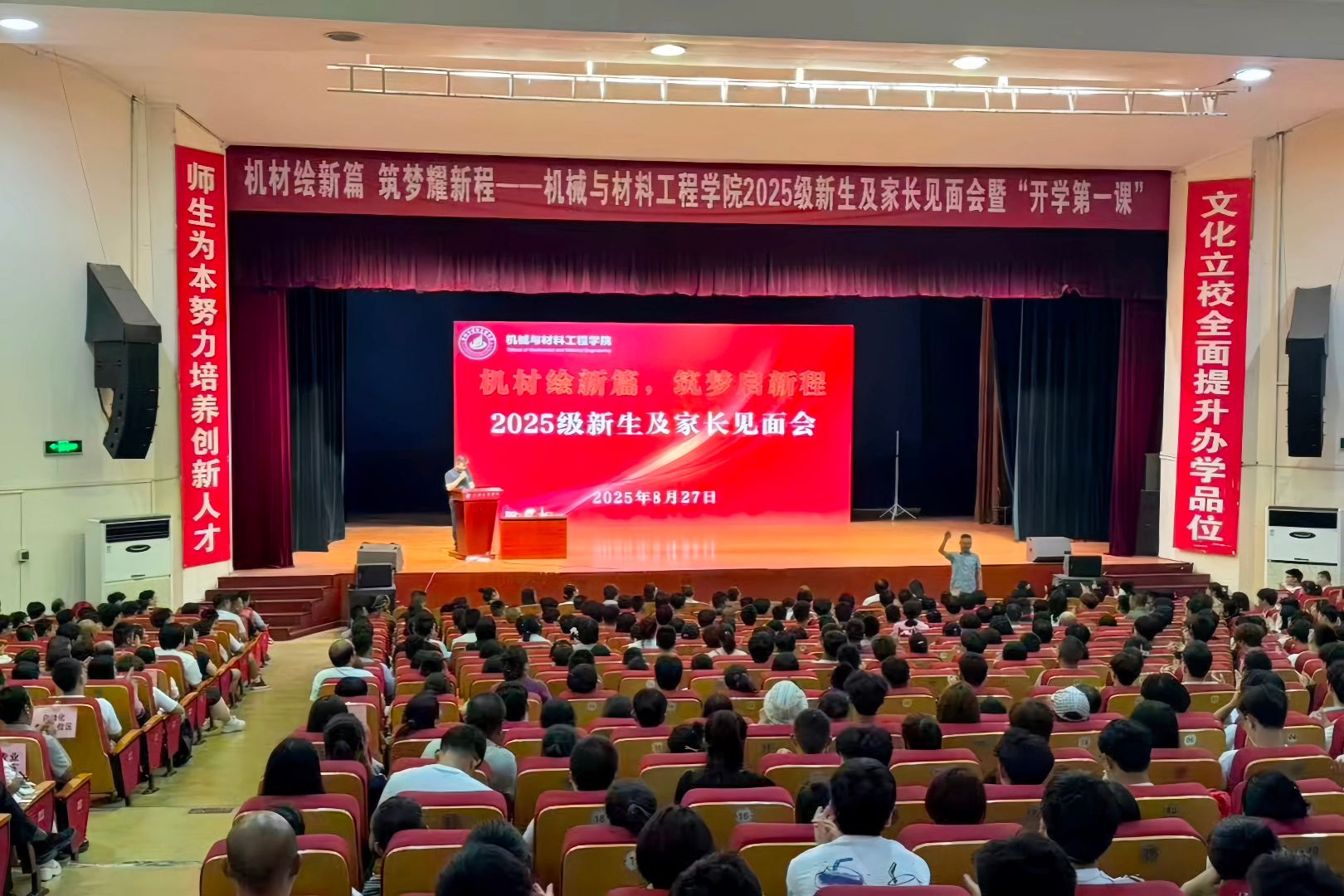 8月27日下午,机械与材料工程学院2025级新生及家长见面会在ac米兰官方网站大礼堂举行。学院领导班子、各系主任、教师代表、全体新生及家长共同参加。党总支书记武文斌主持见面会。