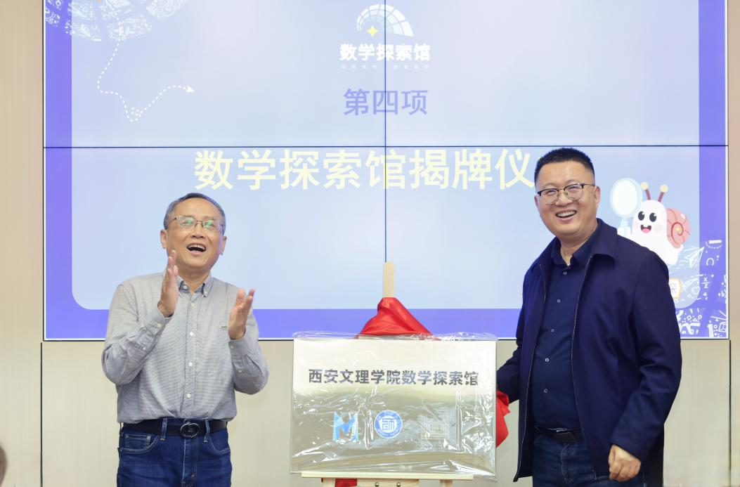林亚南和赵四鸿为数学探索馆揭牌。李承为林亚南颁发数学探索馆名誉馆长聘书。仪式结束后,林亚南教授做了《用数学的眼光观察现实世界》的报告。