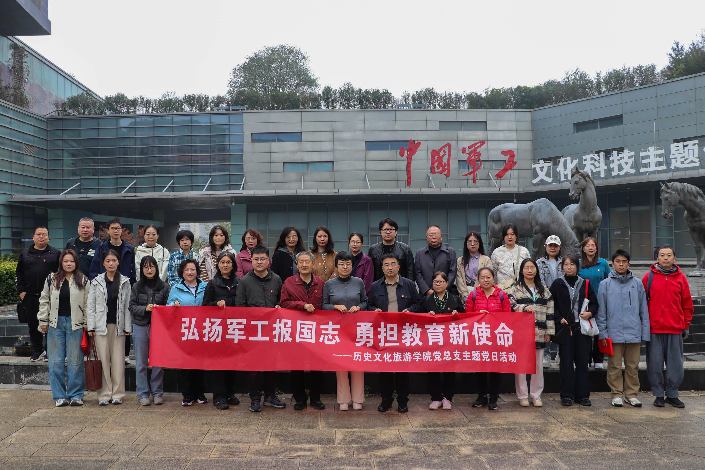 10月19日,历史文化旅游学院党总支40余名师生前往中国军工文化科技主题馆,开展“弘扬军国报国志 勇担教育新使命 ”主题党日活动。该馆是国防科工局指导建设军工科技展馆,通过参观活动、现场党课等形式,师生们了解了我国军工发展的悠久历程,深刻体会我国军工文化的深厚底蕴与科技成就的辉煌,更切身感受到军工发展是国家和民族自立自强的强大支撑。