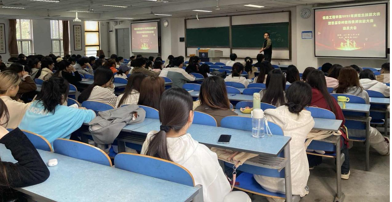 10月30日中午,信息工程学院数学与应用数学系召开师范生技能大赛动员会。系主任王挺、秦岭数栈卓越教师创研中心主任于丽芳,副主任崔一民与全体同学共计200余人齐聚现场,共启新程。