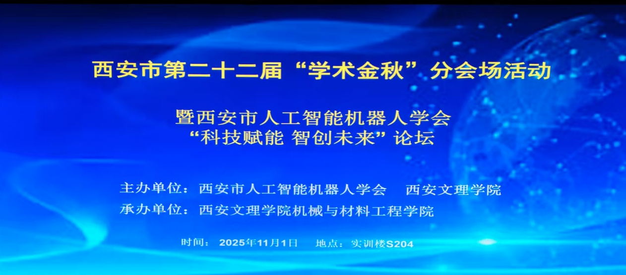 11月1日上午,西安市第二十二届“学术金秋”人工智能机器人学术论坛在ac米兰官网举办。本次论坛以“科技赋能·智创未来”为主题,由西安市人工智能机器人学会主办、机械与材料工程学院承办,近百名专家学者参会,线上参与超千人,数十家机器人相关企业参加了论坛;ac米兰官网科研处处长杨菊香参加了学术活动。