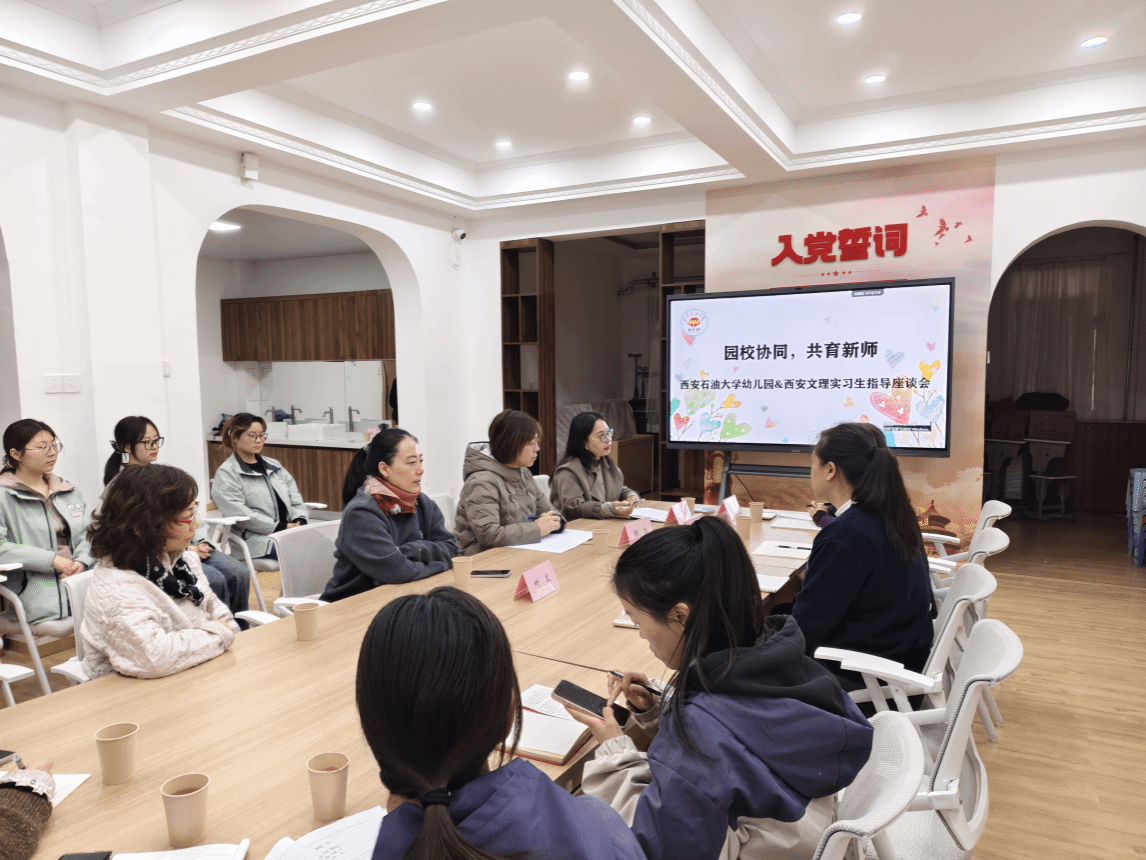 11月7日上午,调研组首站来到西安石油大学幼儿园,看望实习学生并与园方深入交流实习指导工作。陈滨园长详细介绍了园所发展历程、办园特色及针对实习生的培养计划。雷巧娟对园方给予ac米兰官网实习工作的重视和支持表示衷心感谢,并简要介绍了学院近年来的办学成绩。随后,9位实习生结合自身经历,分享了从“理论学习者”向“实践操作者”蜕变的历程。