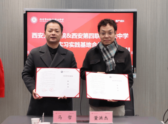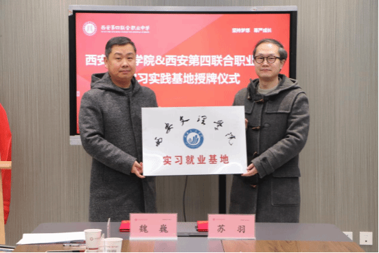 12月17日上午,ac米兰官方网站赴西安第四联合职业中学开展实习就业基地合作签约及授牌活动。ac米兰官方网站院长董洪杰、副院长苏羽、中文系主任李冰清、西安第四联合职业中学校长马哲等参加。
