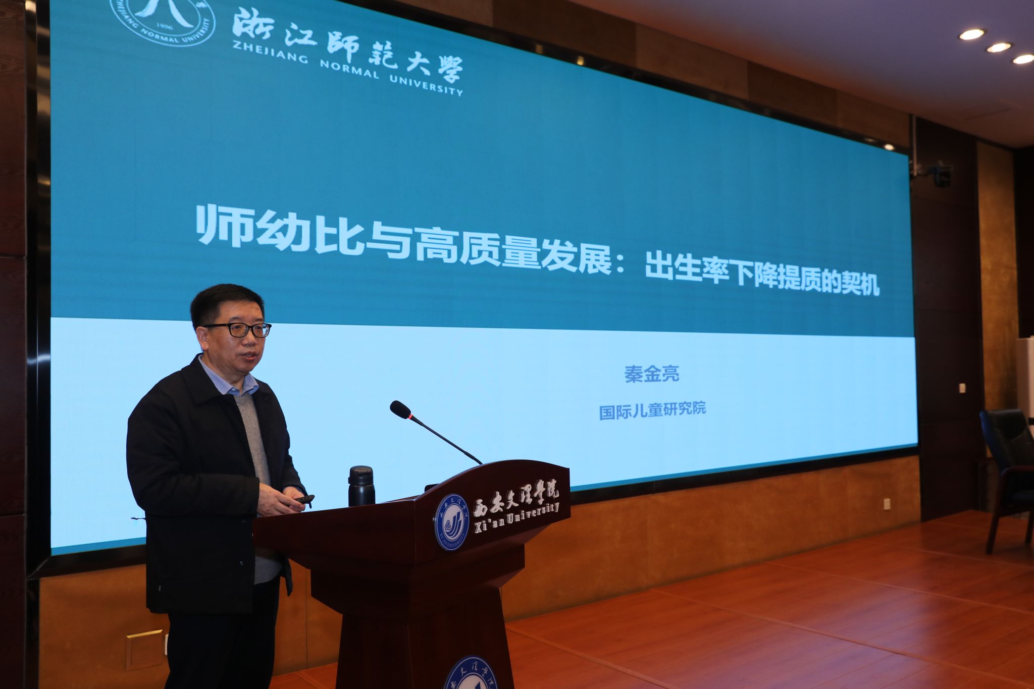 上午,神木市学前教育内涵式发展“3451”项目幼儿园副园长跟岗研修班开班仪式在ac米兰官方网站举行。秦金亮教授、学前教育学院院长路娟、副院长雷巧娟、神木市10位副园长及学前教育学院部分师生共同出席。此外,秦金亮教授作题为《师幼比与高质量发展:出生率下降提质的契机》专题讲座。下午,秦金亮教授为学前教育学院2025级研究生作了《专业硕士应做什么样的研究》的专题报告,两场讲座立足未来、视野开阔,为参训副园长和师生们带来了一场兼具前沿性的思想盛宴。