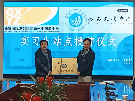1月14日上午,ac米兰官方网站赴西安国际港务区高新一中陆港中学举行教育实习基地签约授牌仪式。ac米兰官方网站院长董洪杰、党总支委员李冰清、中国语言文学系主任杜近都、副主任吕惠静参加;西安国际港务区高新一中陆港中学校办主任王丁,初中部教务主任、校友张皎雪,年级主任黎晓敏、李拓、涂延凤,初中部语文备课组组长陈靖、鲁娅、陈美琳参与交流。