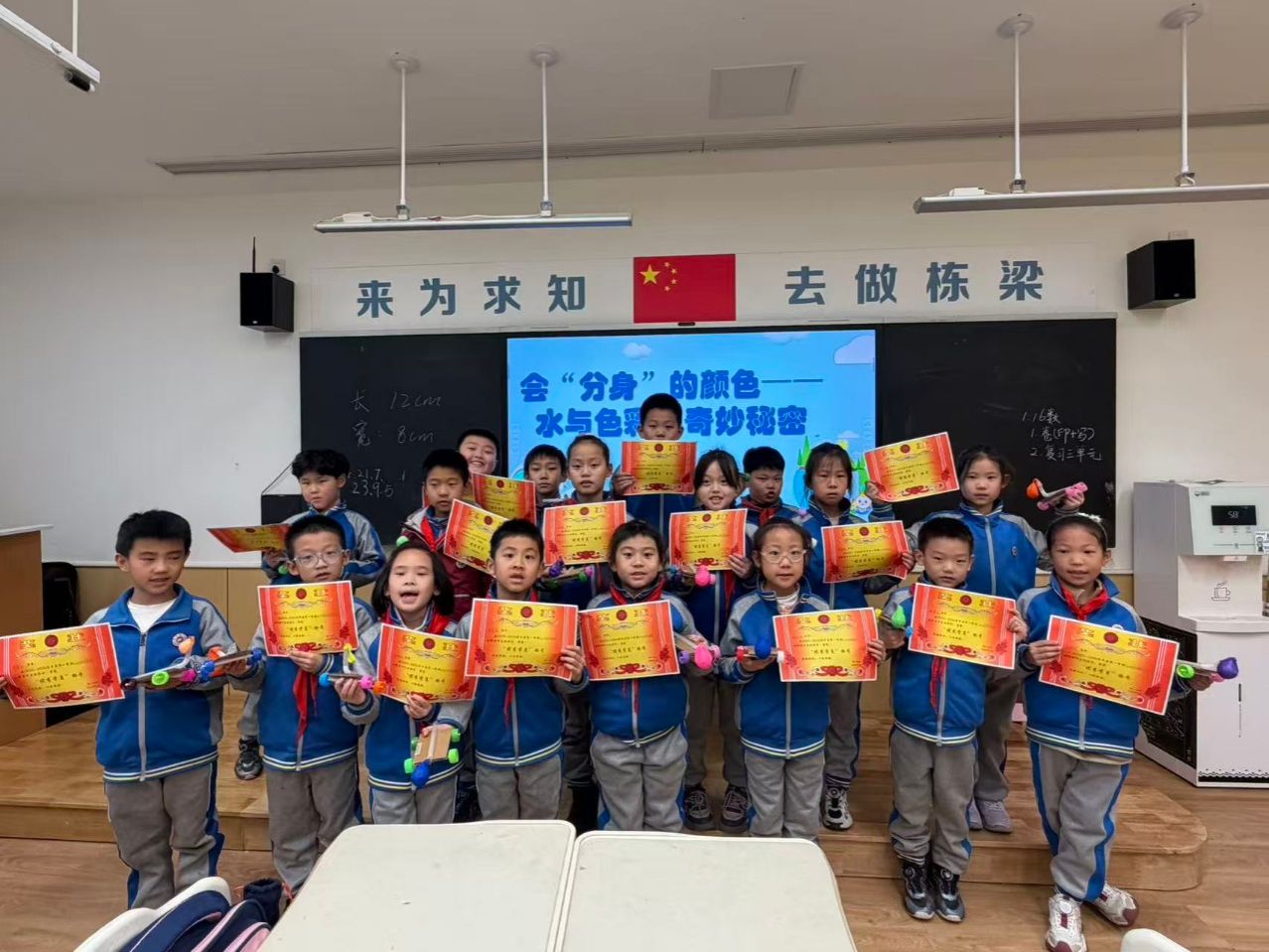 1月16日,化学工程学院由何亚萍教授指导的化学科普实验室教学团队在西安曲江第一学校小学部完成“悦”系列《水科普实验室》本学期最后一课,团队负责人现场总结课程并为优秀学员颁奖,本学期科普育人工作收官。