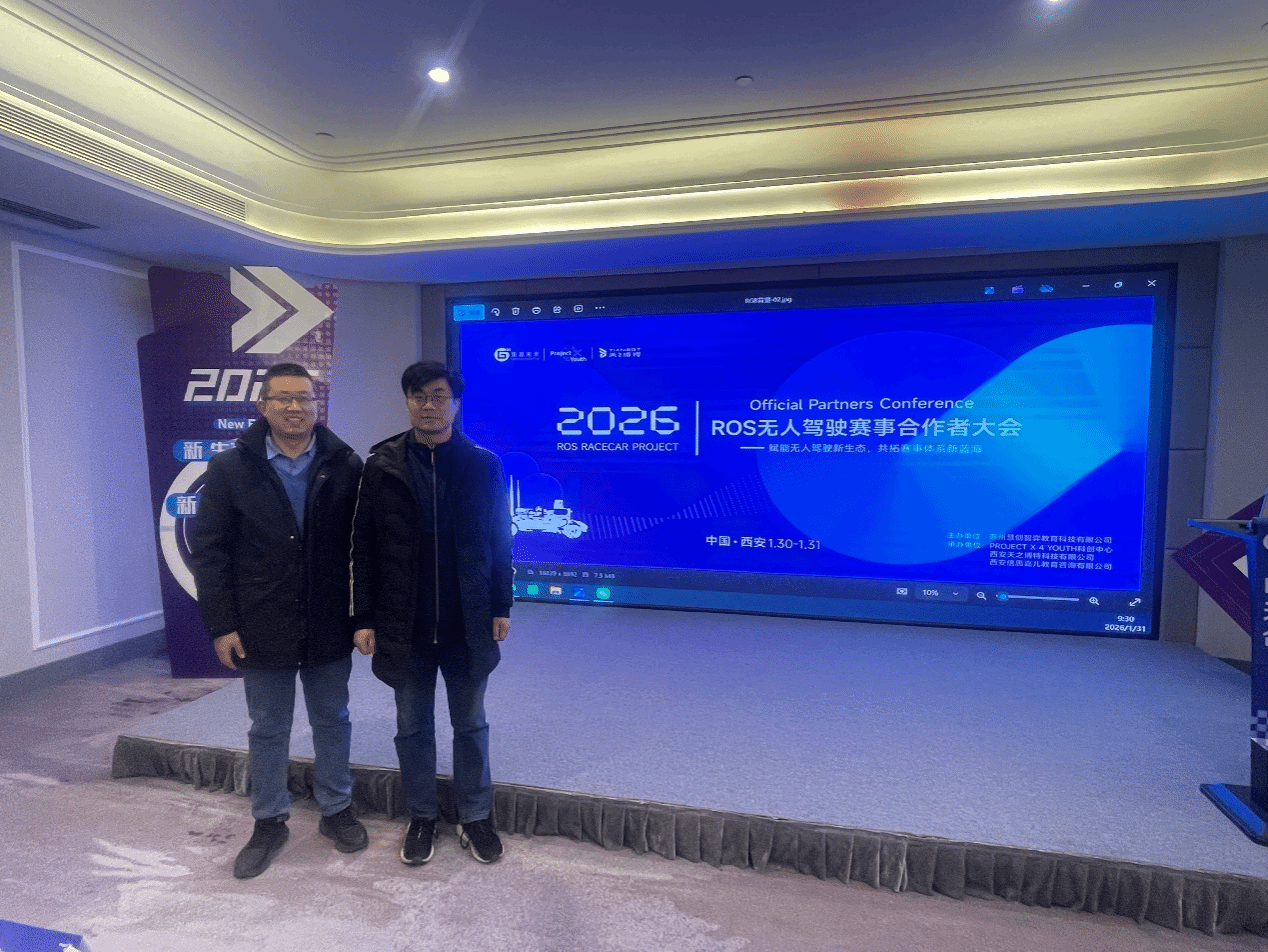 1月31日,物联网工程系主任张松昌与骨干教师徐阳扬参加 “2026 ROS 无人驾驶赛事合作者大会”。大会汇聚高校与科技企业代表,聚焦技术发展、赛事构建与产教融合。学院通过专题研讨对接优质资源,为优化课程体系、强化实践教学、搭建创新平台提供重要支撑,后续将推动赛事内容融入教学,培养产业适配人才。