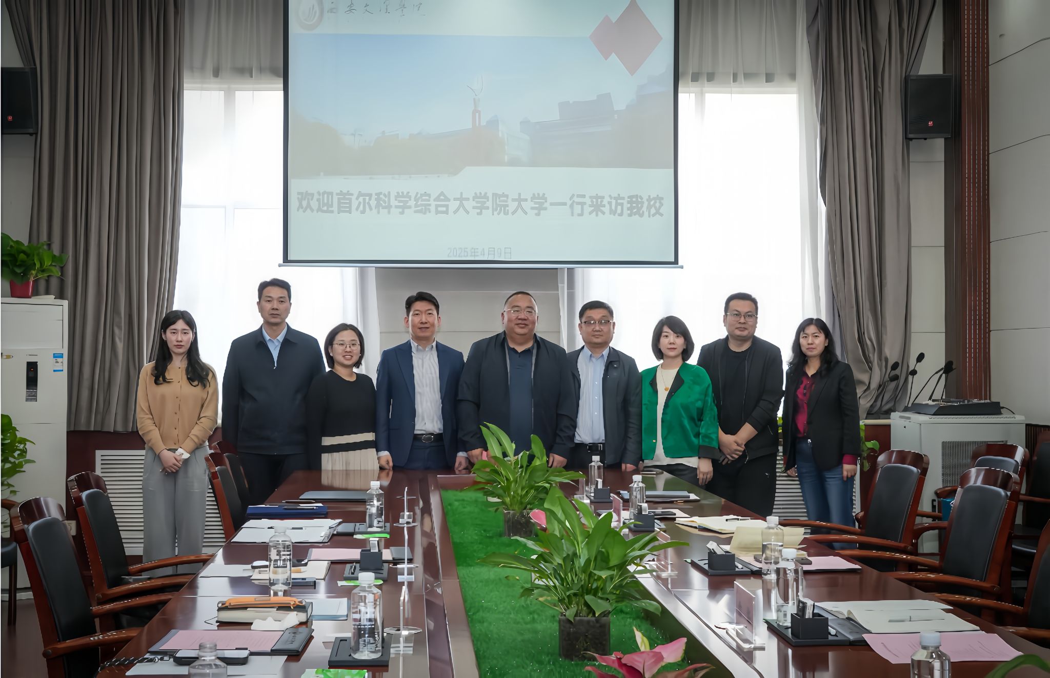 4月9日,韩国首尔科学综合大学院大学代表团总管本部长尹成日一行在西安市新城区文联主席、文化产业发展办公室主任李昕的陪同下到访ac米兰官网,ac米兰官方网站副校长任晖出席座谈会、国际交流处及相关学院负责人参会。会议由国际交流处处长俞华主持。