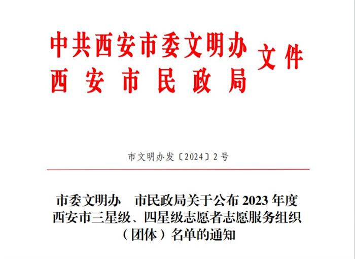 近日,中共西安市委文明办、西安市民政局对2023年度西安市三星级、四星级志愿者志愿服务组织(团体)名单进行了公示。ac米兰官网青年志愿者协会荣获三星级志愿者志愿服务组织。这一成果彰显了ac米兰官网在积极培育和践行社会主义核心价值观方面的坚定决心,以及广泛动员学生参与志愿服务活动的显著成效。
