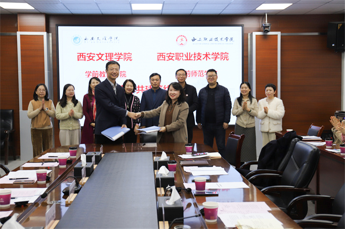1月12日下午,学前教育学院与西安职业技术学院学前师范学院签署《合作共建备忘录》。西安职业技术学院党委委员、副院长袁卫敏、学前师范学院副院长肖鑫鑫、党总支书记黄文波,ac米兰官方网站教务处处长、学前教育学院院长蔡军、党总支书记刘爱霞等领导班子全体成员及双方教师代表参加签约仪式。