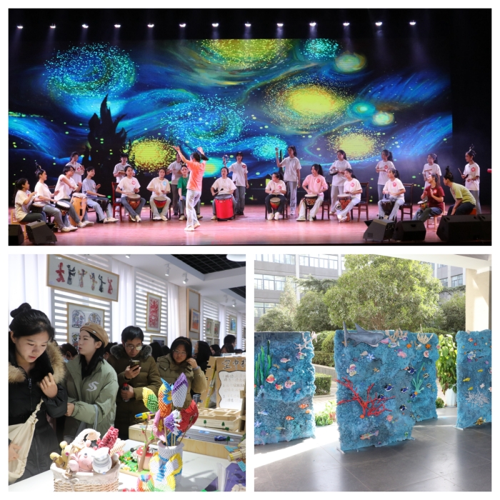 本次活动分为毕业生基本功舞台展示、美工作品展示及就业供需洽谈会三个环节,并全程直播。活动全方位展示了学前教育学院毕业生在声乐、器乐、舞蹈、绘画、手工、摄影、儿童剧等方面的专业技能。美工作品展由环境创设区、美工区及幼儿玩教具区三个区域构成,展出的作品形式多样、素材丰富、主题鲜明,充分反映出学前教育学院毕业生扎实的美工创意制作功底。通过本次展示,较好的呈现了学院 “驻园式”创新人才培养模式的效果。莅临现场的教育局及用人单位领导均对学生的舞台表演和美工创作给予高度的评价。