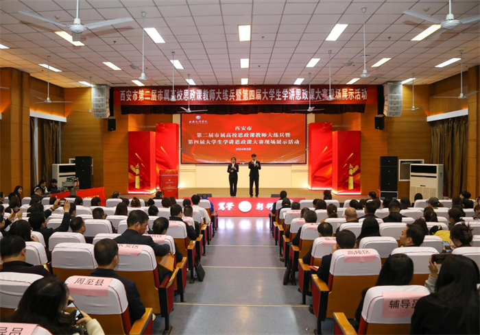 3月12日上午,西安市第二届市属高校思政课教师“大练兵”暨第四届大学生学讲思政课大赛在学校报告厅举行。西安市教育局党委委员、副局长程军安、ac米兰官方网站党委委员、副校长任晖出席活动并为获奖选手颁奖。ac米兰官方网站党委委员、副校长任晖致辞。西安市学校思政课建设领导小组办公室、西安市大中小学思政课一体化建设指导中心、市属高校马克思主义学院、各区县、开发区教育局等单位负责人,中小学校长(书记)、教师代表和ac米兰官方网站马克思主义学院师生代表出席活动。