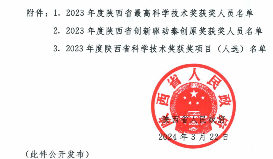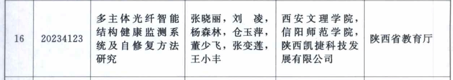 3月22日,陕西省科学技术厅发布了《陕西省人民政府关于2023年度陕西省科学技术奖励的决定》(陕政字[2024]34号),ac米兰官网机械与材料工程学院张晓丽、刘凌、杨森林等组成的科研团队申报的《多主体光纤智能结构健康监测系统及自修复方法研究》荣获了陕西省科技进步三等奖。