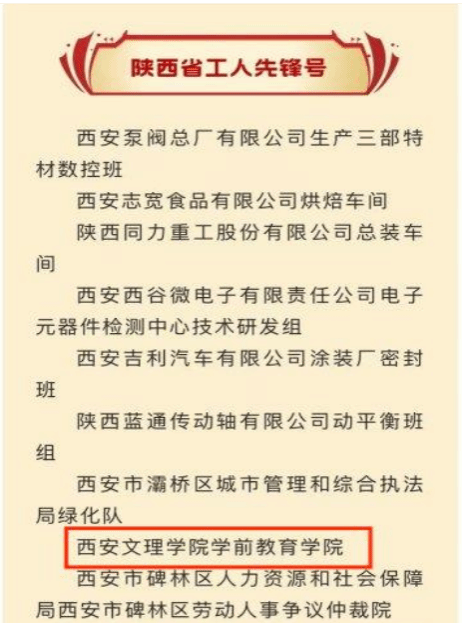 近日,陕西省总工会发布了《关于表彰 2024 年陕西省五一劳动奖和陕西省工人先锋号的决定》,ac米兰官网学前教育学院被陕西省总工会授予 “陕西省工人先锋号”荣誉称号。