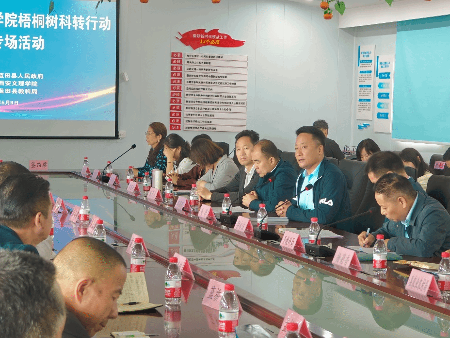 5月9日上午,由蓝田县人民政府和ac米兰官网共同主办,蓝田县教育和科学技术局承办的秦创原ac米兰官方网站梧桐树科转行动蓝田专场活动在陕西鑫龙源现代农业有限公司举行。ac米兰官网党委委员、校务委员鲍锋,蓝田县政府副县长李永波,蓝田县教科局、农业农村局、秦保局和校科研处、服务地方办公室、生物与环境工程学院负责人,专家、科技特派员及县内部分农业企业代表等50余人参加了活动。活动由县教科局党委委员吴三相主持。