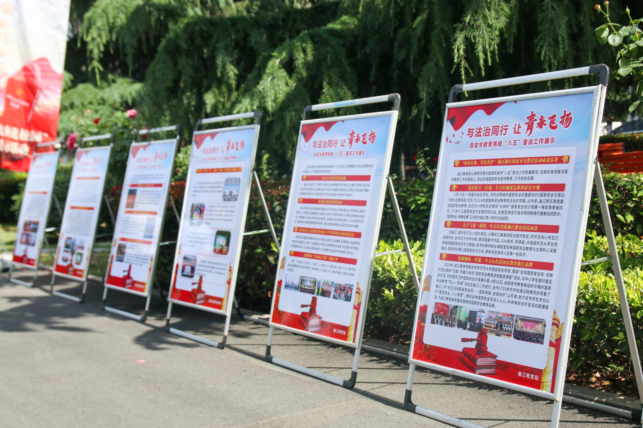 本次活动设置了青少年优秀法治文化作品展览、民法典进校园普法宣传集市和优秀法治文化节目展示等环节。在活动现场,来自西安市各学校的剪纸、水彩画、书法、雕刻等百余件优秀法治文化作品,汇聚成法治文化涓涓细流,吸引在校师生浸润其中,近距离接触法治精神的滋养。由西安市司法局、市法律援助中心、市公证处、司法鉴定机构以及高新区有关单位组成的普法宣传集市为学生普及法律知识、解答法律咨询,受到广大学生欢迎。