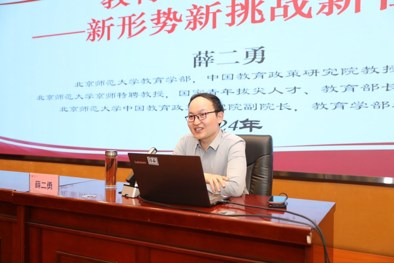 薛二勇以《教育强国建设的形势和任务》为题,结合丰富的教育案例从教育强国的“基本途径”“基本抓手”和“时代特点”等方面指出教育强国的意义,从“教育自身”“教育支撑”和“教育认同”三个方面对教育强国进行了详细解读,提出了教育强国的新形势和新任务,发人深省。