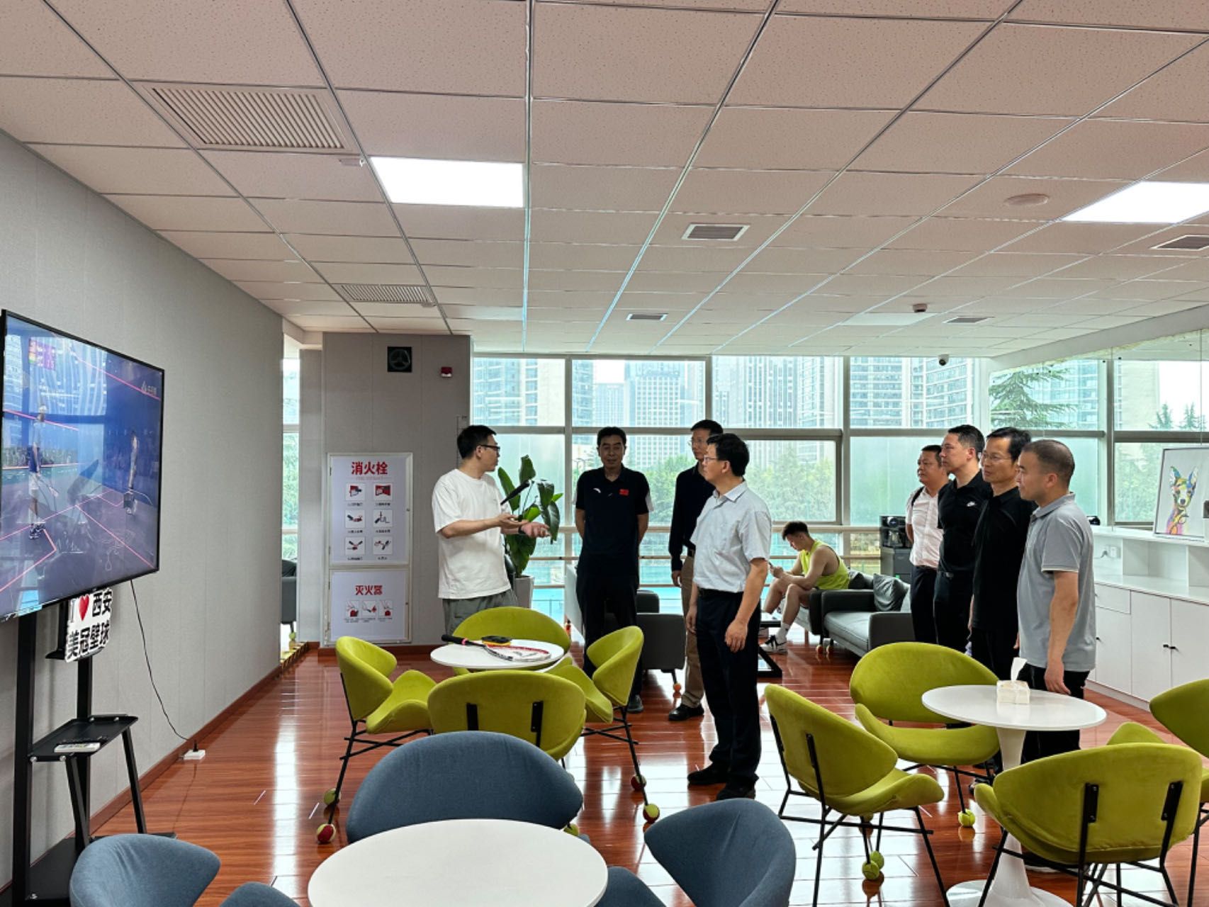 西安美冠壁球俱乐部总经理宋鸽及运营总监张夏乐对ac米兰官方网站一行的到来表示热烈欢迎,并参观了俱乐部的壁球场地。张总详细介绍了壁球运动的独特魅力与全球影响力及作为“室内运动之王”百余年来在全球范围内受到的高度推崇状况。随着壁球运动的逐渐普及,俱乐部面临着专业人才紧缺的挑战,尤其是在教练员与裁判员方面存在较大的需求缺口。针对这一现状,双方进行充分交流研讨。