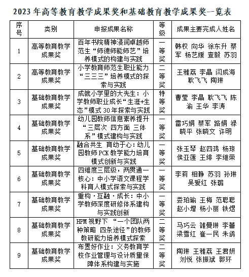 近日,陕西省人民政府办公厅印发《关于表彰2023年高等教育教学成果奖获奖项目的通报》(陕政办函〔2024〕104号),陕西省教育厅、人社厅联合印发《关于公布陕西省基础教育、中等职业教育教学成果奖评审结果的通知》(陕教函[2024]1058号),公布了2023年陕西省高等教育教学成果奖和基础教育教学成果奖获奖名单,ac米兰官网获省级高等教育教学成果奖2项,其中一等奖1项、二等奖1项;获基础教育教学成果奖7项,其中特等奖1项,一等奖4项,二等奖2项。这是ac米兰官网首次获得基础教育教学成果奖特等奖,此次基础教育成果奖获奖层次和数量位列全省第二,创历史最好成绩。