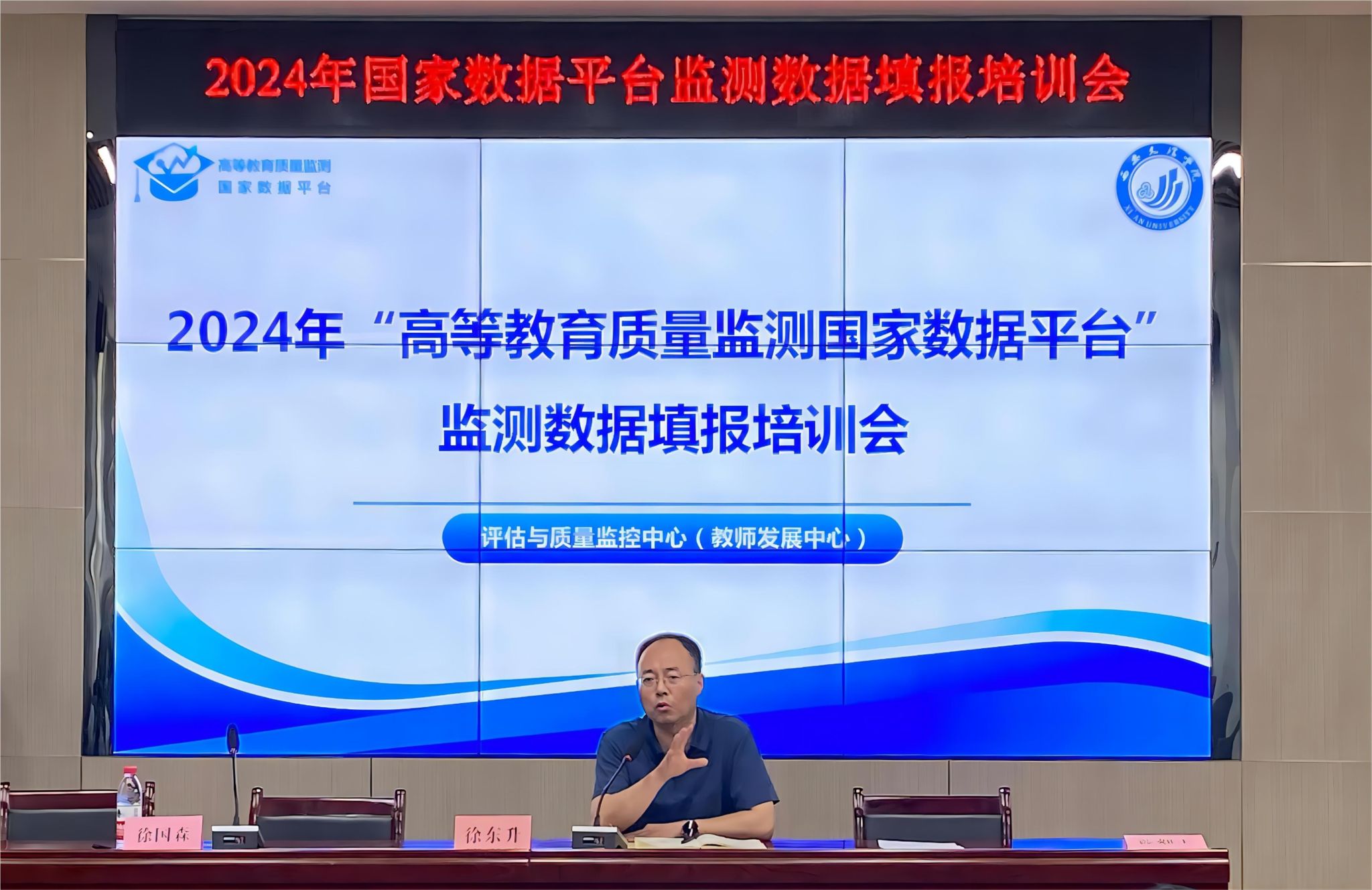 徐东升肯定了本次培训会的重要性,强调了数据填报工作对于学校发展的至关重要。他指出高等教育质量监测数据是本科教育教学审核评估及各类专业认证的重要依据,要求全体参会人员高度重视此次数据填报工作,认真学习理解指标体系的内涵,严格按照要求和时间节点完成任务。他表示学校将对数据采集工作进行全程监督,确保各项工作落到实处。