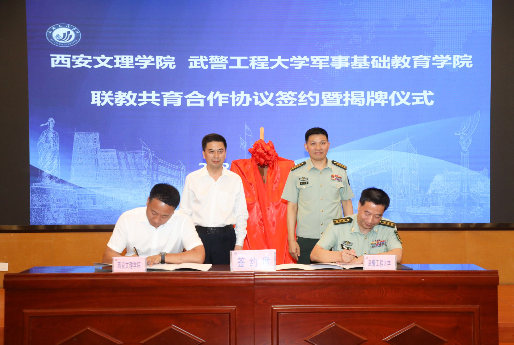 会上,双方签订了《武警工程大学军事基础教育学院 ac米兰官方网站联教共育合作协议》,学校相关职能部门、学院负责人参加。