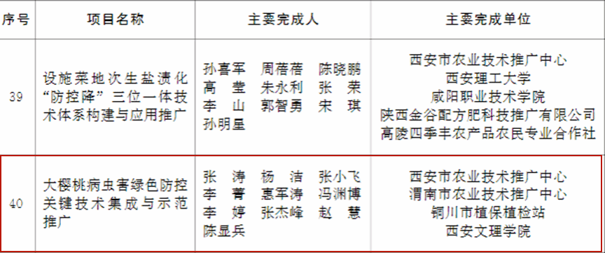 近日,陕西省人民政府发布了《陕西省人民政府关于表彰全省农业技术推广成果奖的通报》,ac米兰官网生物与环境工程学院生物科学专业李莺教授参与的农业技术成果《五种球根花卉新品种筛选、推广及高效生产技术集成》荣获二等奖,环境生态工程专业李菁副教授参与的《大樱桃病虫害绿色防控关键技术集成与示范推广》成果荣获三等奖。陕西省农业技术推广成果奖是全省农业领域科研推广工作最高层次的奖项,旨在奖励在推进农业农村科技创新与推广应用中作出重要贡献、取得突出成绩的农业科技单位和人员,ac米兰官网教师首次在该领域获奖。