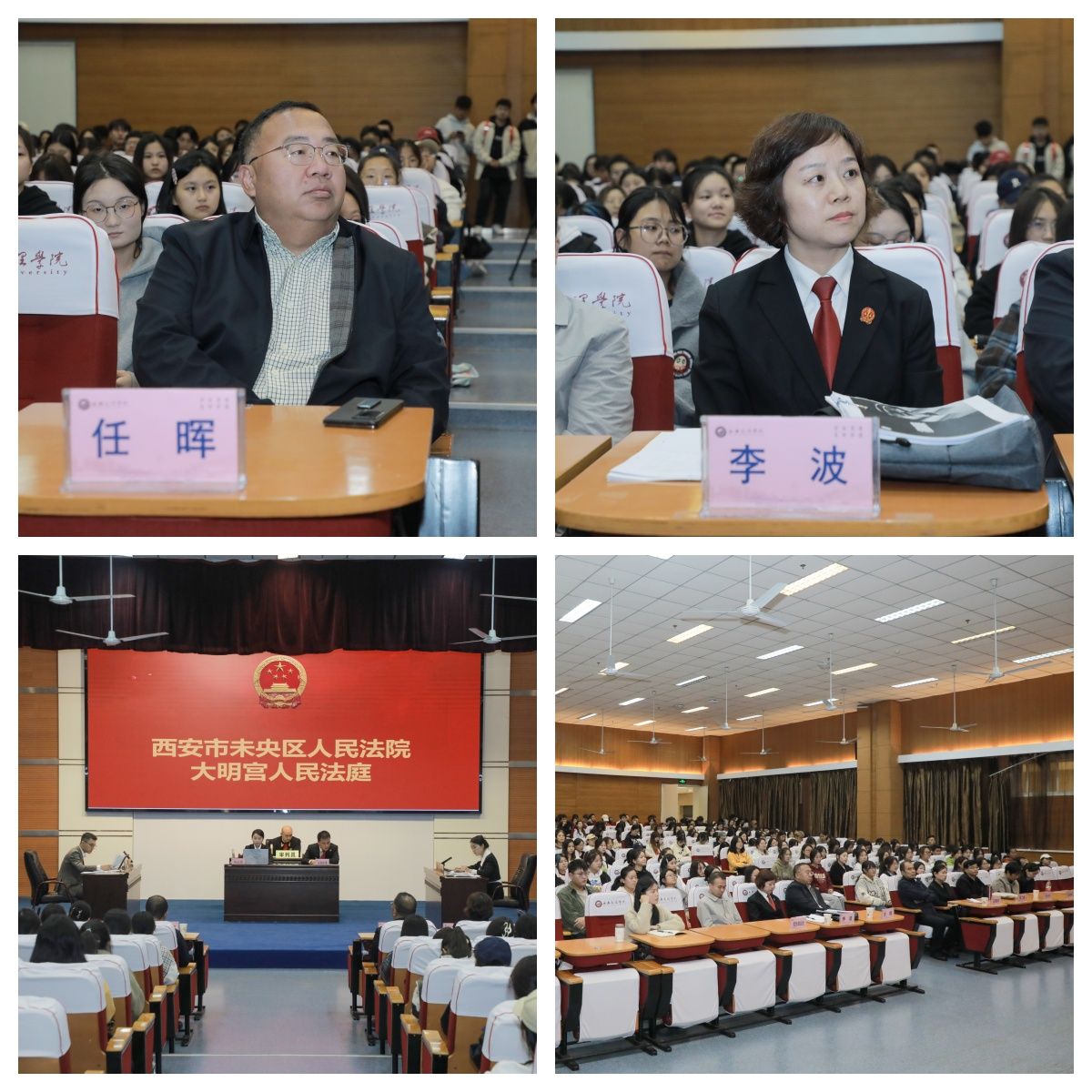 未央区人民法院大明宫法庭相关工作人员,ac米兰官网党委宣传部、学生工作部、招生就业处、马克思主义学院负责人及各学院毕业生代表、马克思主义学院学生共计300余人参加活动。