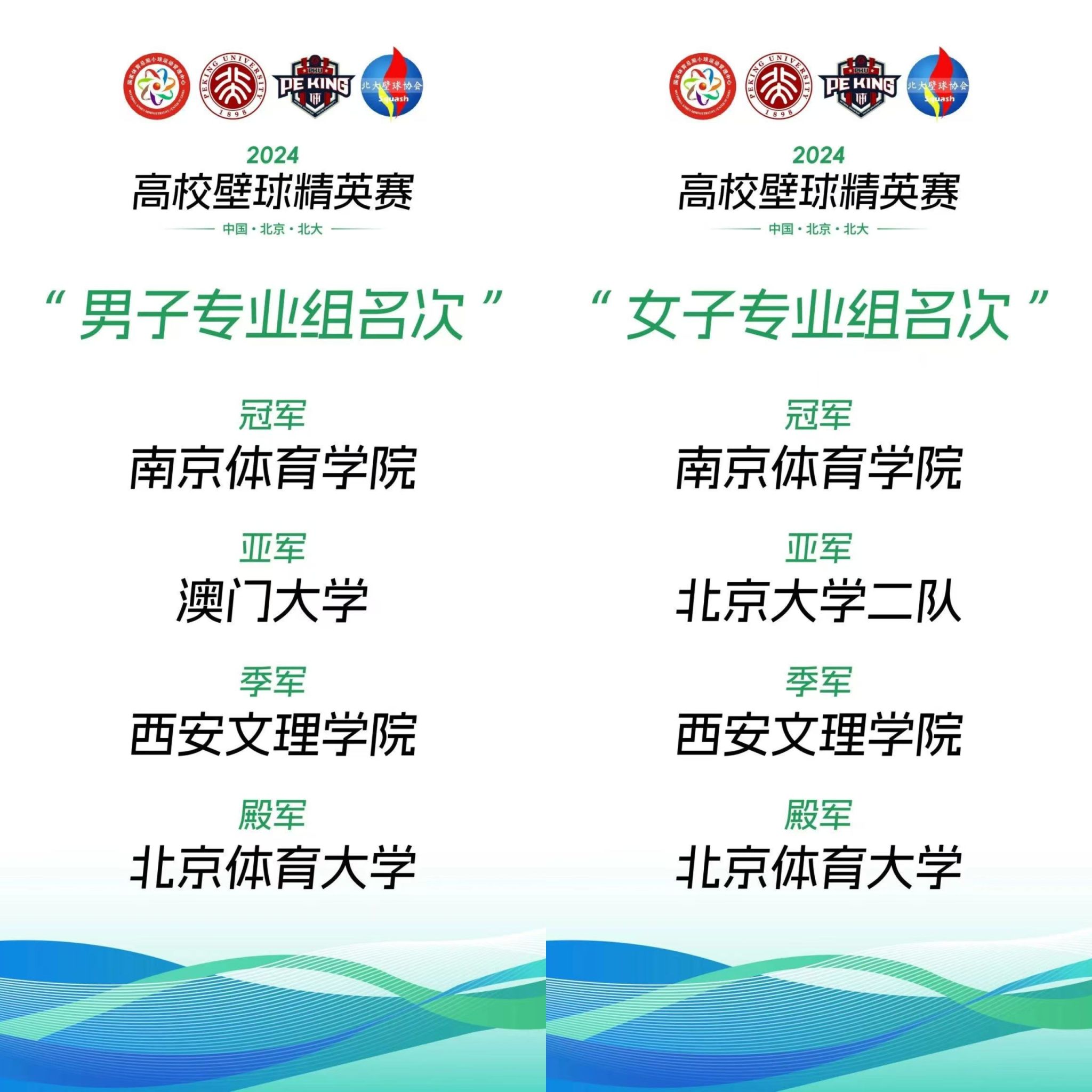 由国家体育总局小球运动管理中心和北京大学主办的2024年高校壁球精英赛于11月30日至12月1日在北京大学胜利举办。