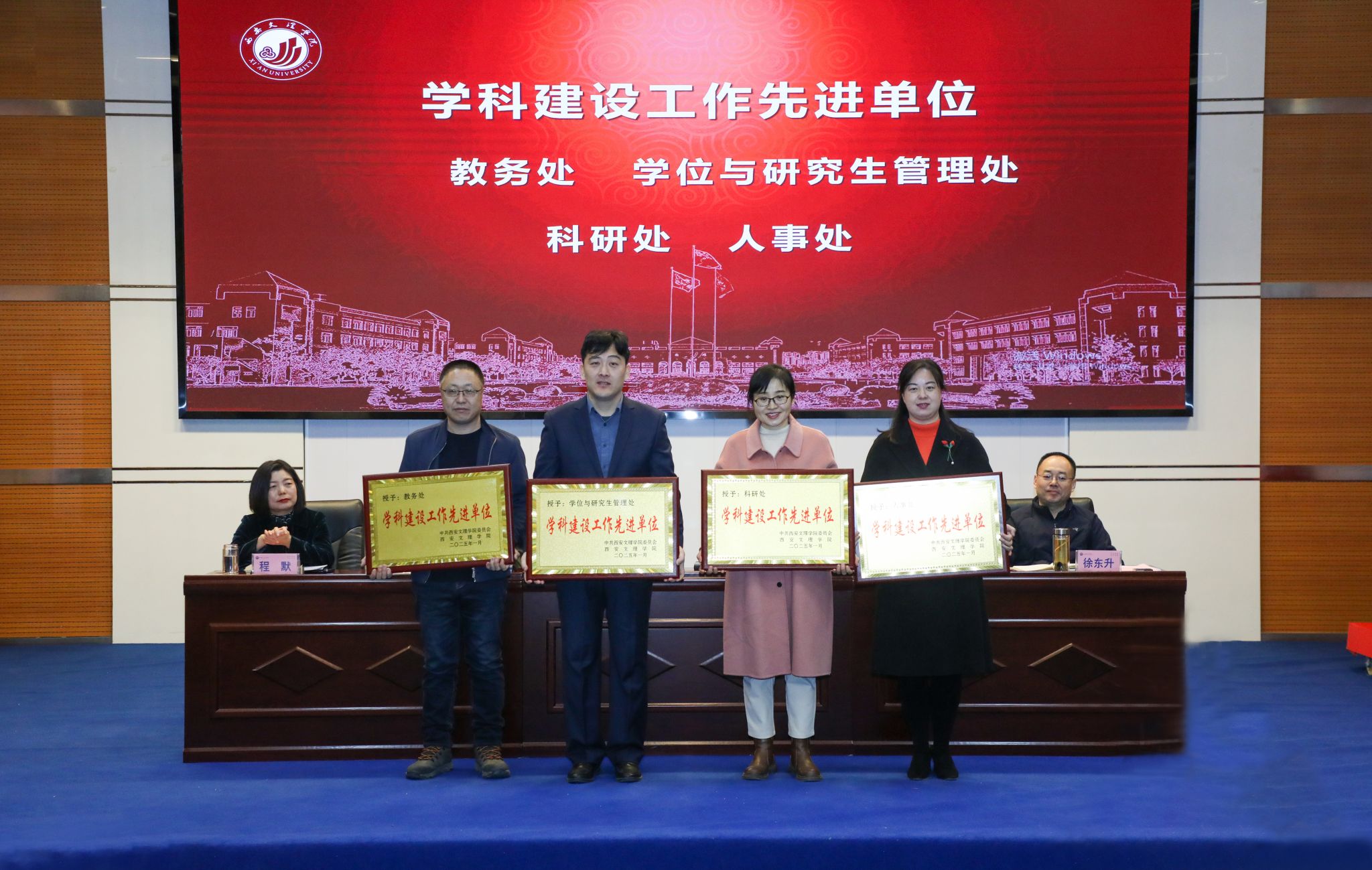 副校长刘明利宣读了《ac米兰官方网站关于申硕工作表彰的决定》。机械与材料工程学院等4个学院获得学科建设工作引领单位奖,学位与研究生管理处等4个部门获得学科建设工作先进单位奖,党政办等12个部门/学院获得学科建设工作优秀保障单位奖。