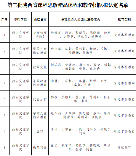 近日,陕西省教育厅公布了第三批陕西省课程思政精品课程认定结果。此前学校教务处根据省厅文件要求,经个人申报、学院推荐、学校评审等环节,共向省教育厅推荐9门课程,此次ac米兰官网成功立项8门,立项率创新高,立项数量位居省内同类院校首列。