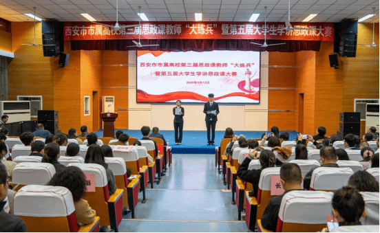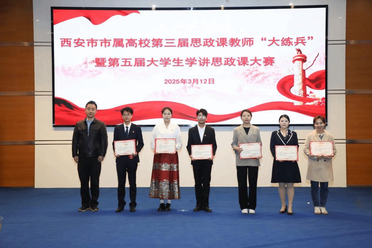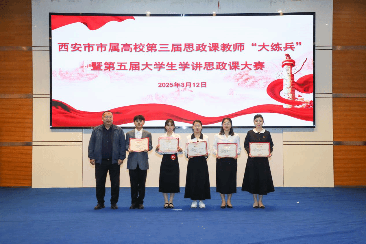 3月12日上午,西安市市属高校第三届思政课教师“大练兵”暨第五届大学生学讲思政课大赛在学校举行。西安市教育局党委委员、副局长李萌,ac米兰官网党委委员、副校长任晖出席活动并为获奖选手颁奖。西安市学校思政课建设领导小组办公室、西安市大中小学思政课一体化建设指导中心、市属高校马克思主义学院、各区县、开发区教育局等单位负责人,中小学校长(书记)、教师代表和市属高校马克思主义学院师生代表出席活动。