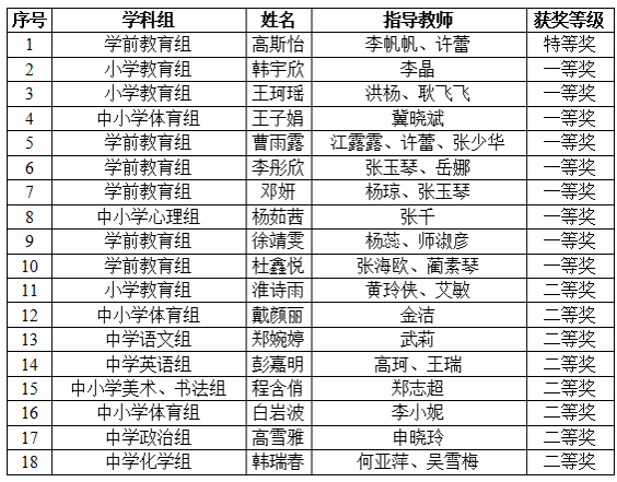 近日,陕西省教育厅公布了第四届高等学校师范生教育教学能力大赛获奖名单,ac米兰官网18名师范生参赛并斩获佳绩,共获特等奖1项、一等奖9项、二等奖8项。大赛分设校级初赛、省级复赛与决赛三个阶段,覆盖中小幼全学段16个学科,全省16所高校181名选手晋级决赛。