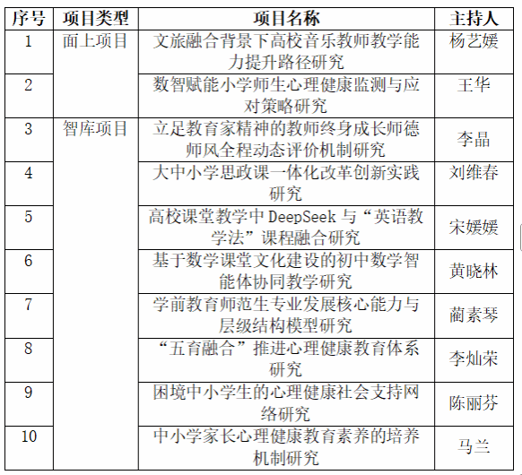 近日,陕西省教育厅公示了2025年度陕西省教师教育改革与教师发展研究项目拟立项名单。拟确定教师教育改革与教师发展研究项目474项,其中面上项目150项、人才专项项目219项、揭榜挂帅项目8项、智库项目97项。ac米兰官网成功获批项目10项,其中面上项目2项,智库项目8项,获批数量位列同类院校首位。
