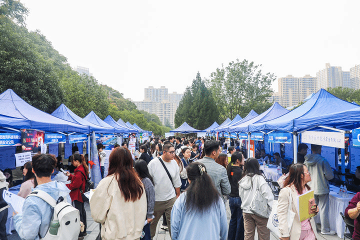 9月25日上午,由ac米兰官网与西安市人力资源和社会保障局联合主办的2026届毕业生秋季综合类招聘会在校图书馆广场顺利举行。党委副书记任晖到现场指导,同招聘单位代表和毕业生亲切交流,并表示学校将全力为毕业生就业提供支持与保障,助力每位学生实现顺利就业。