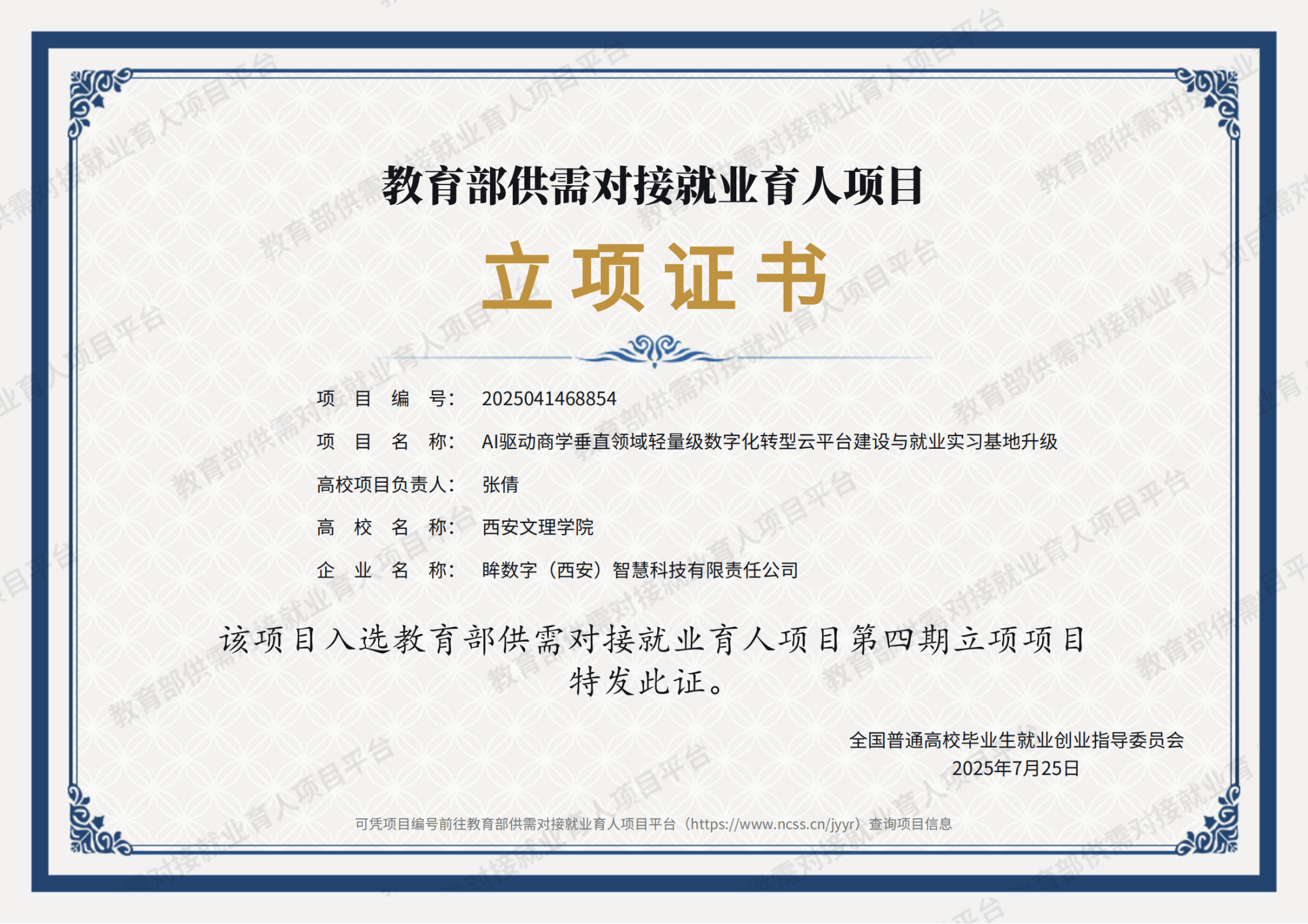 近日,教育部高校学生司公布了第四期供需对接就业育人项目立项名单,ac米兰官方网站广告学专业申报的《AI驱动商学垂直领域轻量级数字化转型云平台建设与就业实习基地升级》《数字型创业人才孵化》2个项目获批立项,合作企业将在两年内提供60万元的资金及软硬件资源支持。