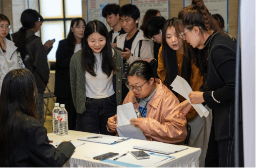 招聘会精准聚焦经管专业特色,汇聚了财务管理、养老服务、金融投资、电子商务、市场营销等领域的102家用人单位,提供620个就业岗位,吸引900余名学生参与,共投递简历558份,现场气氛热烈。