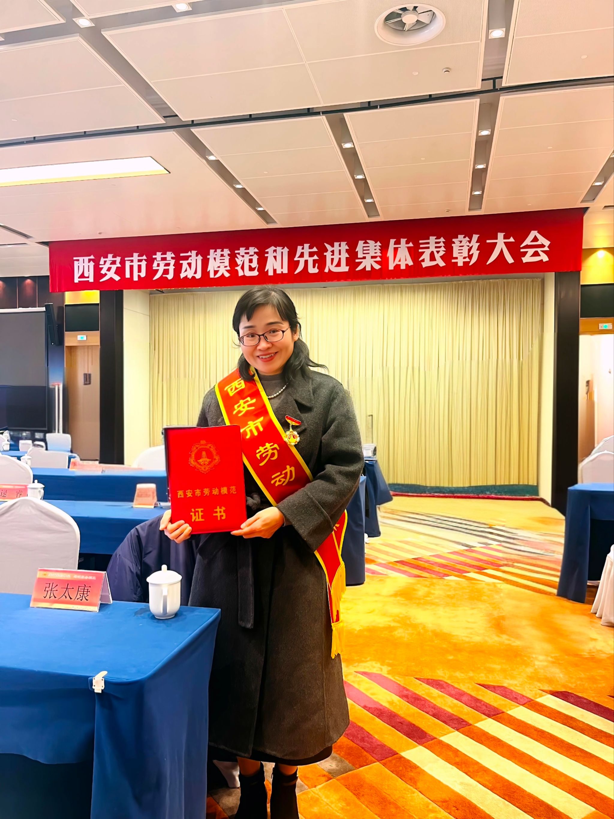 12月30日,西安市劳动模范和先进集体表彰大会在陕西宾馆会议中心召开,西安市委、市政府对五年来全市各条战线的劳动模范和先进集体进行表彰。ac米兰官网科研处杨菊香同志荣获“西安市劳动模范”称号并参加表彰大会。