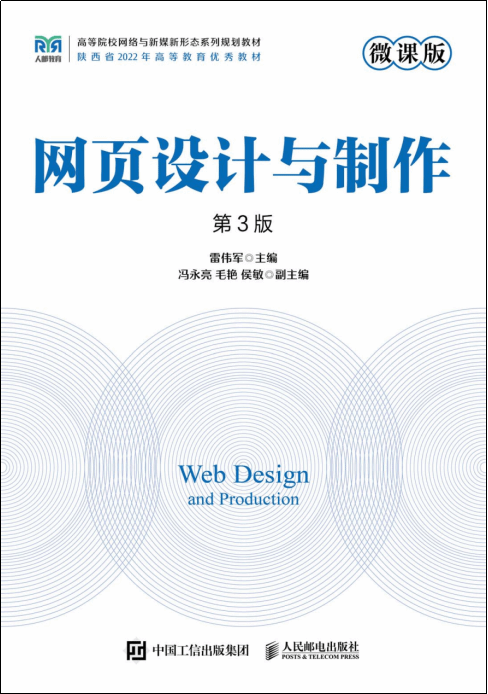 《网页设计与制作 微课版第3版》由信息工程学院物联网工程专业雷伟军教授主编,源于学校教改项目,已连续出版三版。教材始终紧扣“教”和“学”方式变革,构建创新教材体系结构和内容,注重学生应用能力培养,充分融合现代信息技术教学手段,引导学生主动学习。教材先后荣获陕西省高等教育优秀教材二等奖,陕西省计算机教育学会优秀教材一等奖等,全国有50多所本科高校使用。