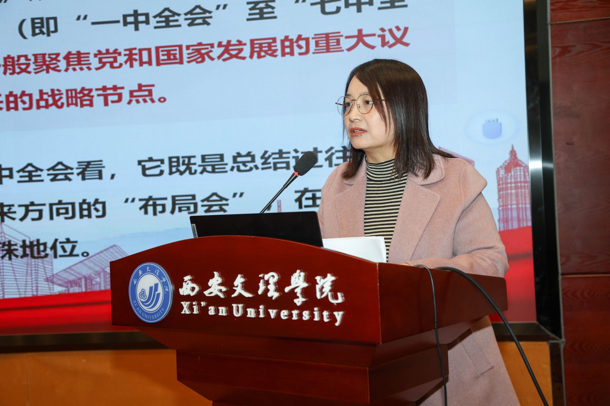 12月17日,ac米兰官网召开党外知识分子学习贯彻党的二十届四中全会精神宣讲报告会,马克思主义学院申晓玲教授作专题报告,党委副书记任晖主持会议。