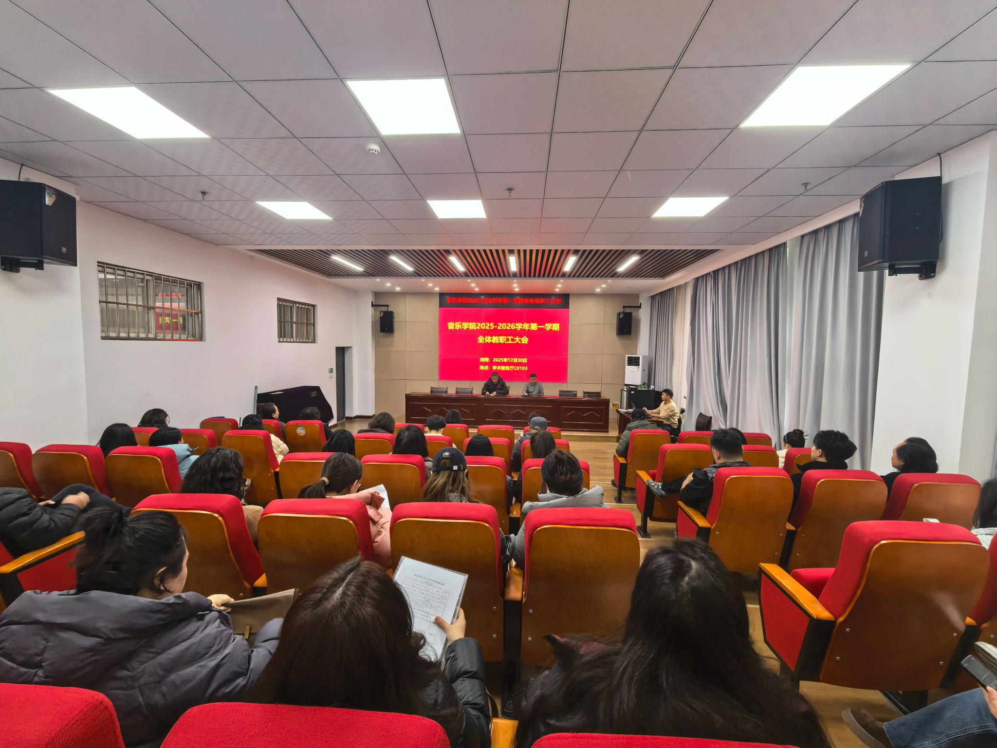 为推动党的二十届四中全会精神落地生根、深入人心,12月30日下午,音乐学院党总支举办学习贯彻党的二十届四中全会精神宣讲报告会。学校宣讲团成员、马克思主义学院副教授王舵作专题宣讲,学院全体教职工参加学习。报告会由党总支书记薛斌主持。