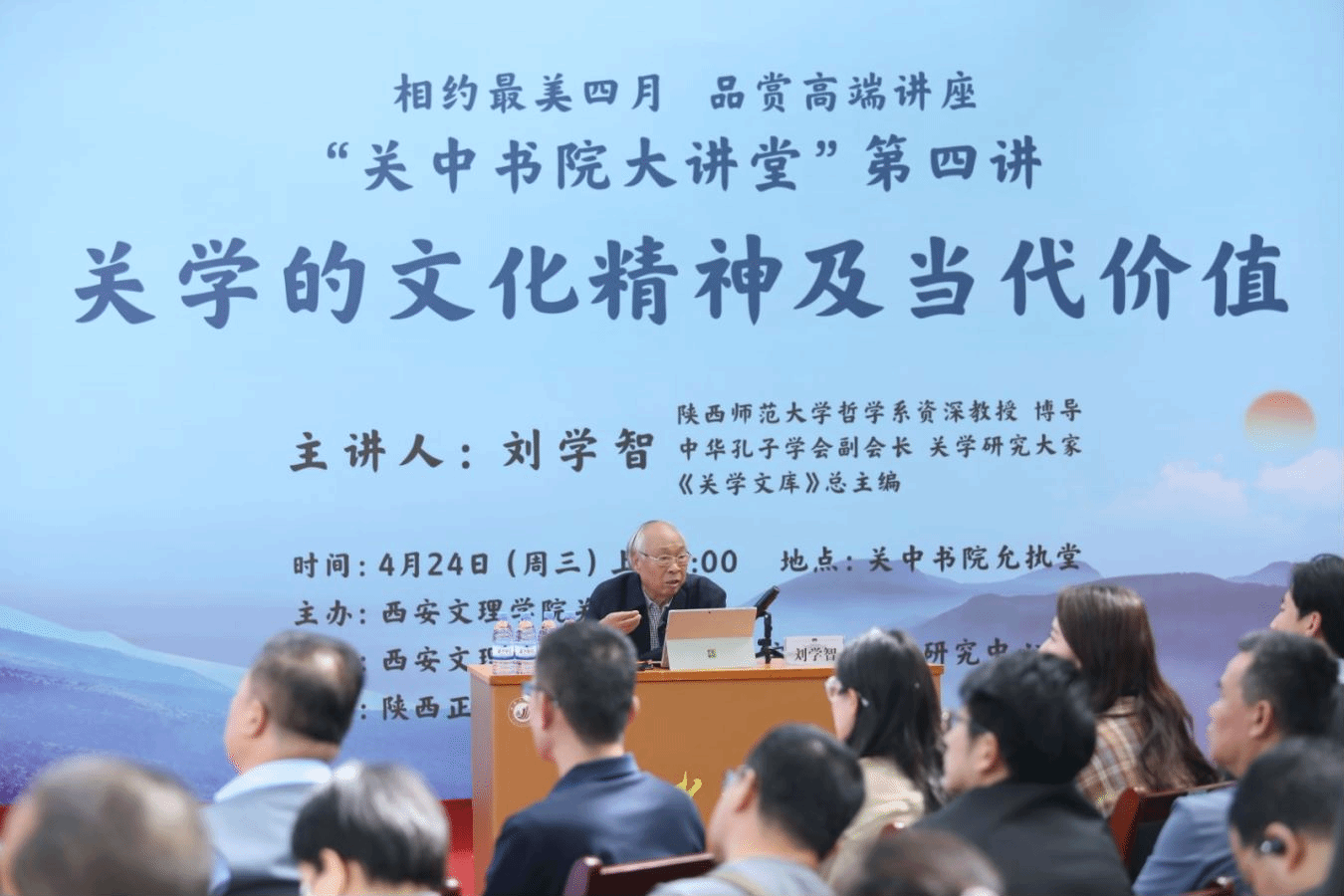 4月24日上午,“相约最美四月,品赏高端讲座”——“关中书院大讲堂”第四讲在ac米兰官网关中书院允执堂前顺利举行。