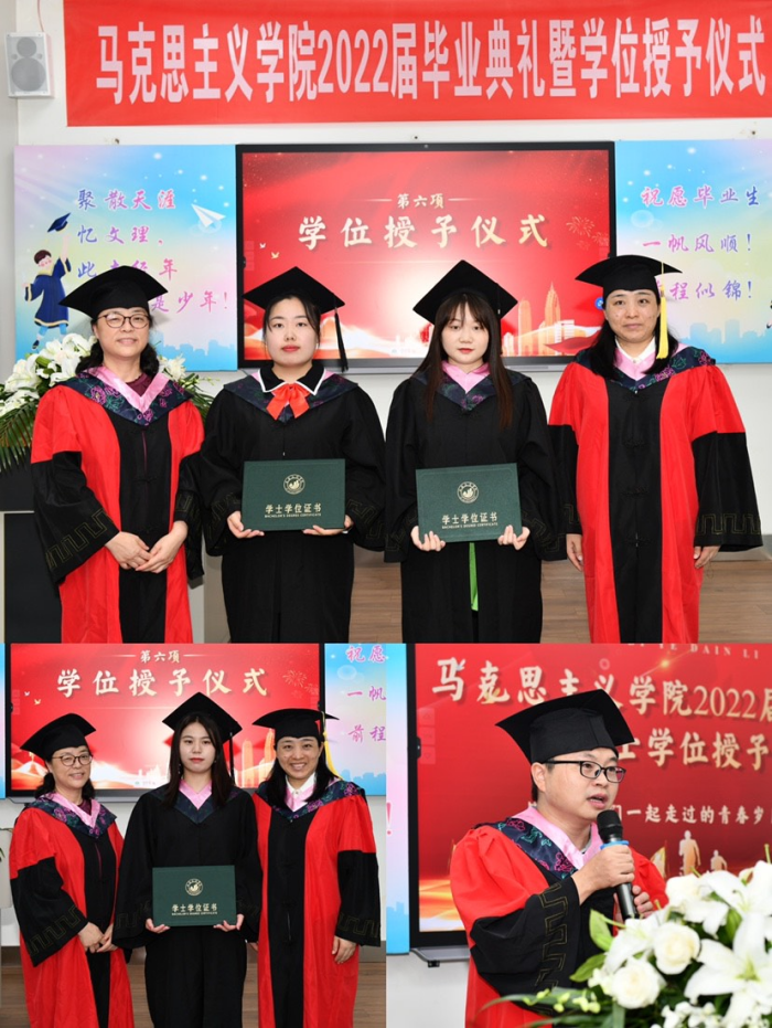 7月5日上午,马克思主义学院为2022届38名毕业生举行毕业典礼暨学士学位授予仪式,受疫情影响,学院首次采取线上线下相结合的形式。学校相关职能部门领导、学院班子成员、教职工代表、毕业生代表、在校生代表等参加仪...