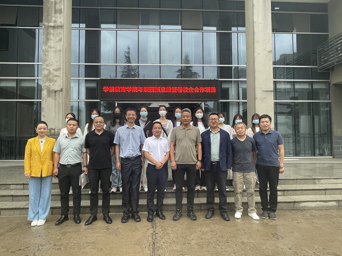 7月22日上午,学前教育学院与陕西新思维人力资源有限公司在行政楼为经费总额100万元的校企合作项目举行签约仪式。陕西新思维人力资源有限公司总经理王刚,副总经理刘卫阳、尚茁;校党委委员、科研处长鲍锋,学前教育...