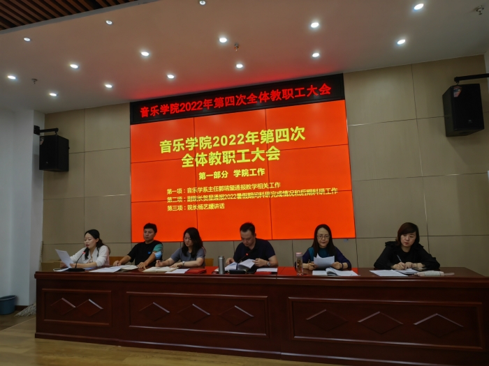 9月7日下午,音乐学院召开全体教职工大会,全体教职工参加会议,会议由党总支书记魏夫涛主持。 会议集中学习了习近平总书记在中央统战工作会议上的重要讲话精神,《党委(党组)落实全面从严治党主体责任规定》和《中...