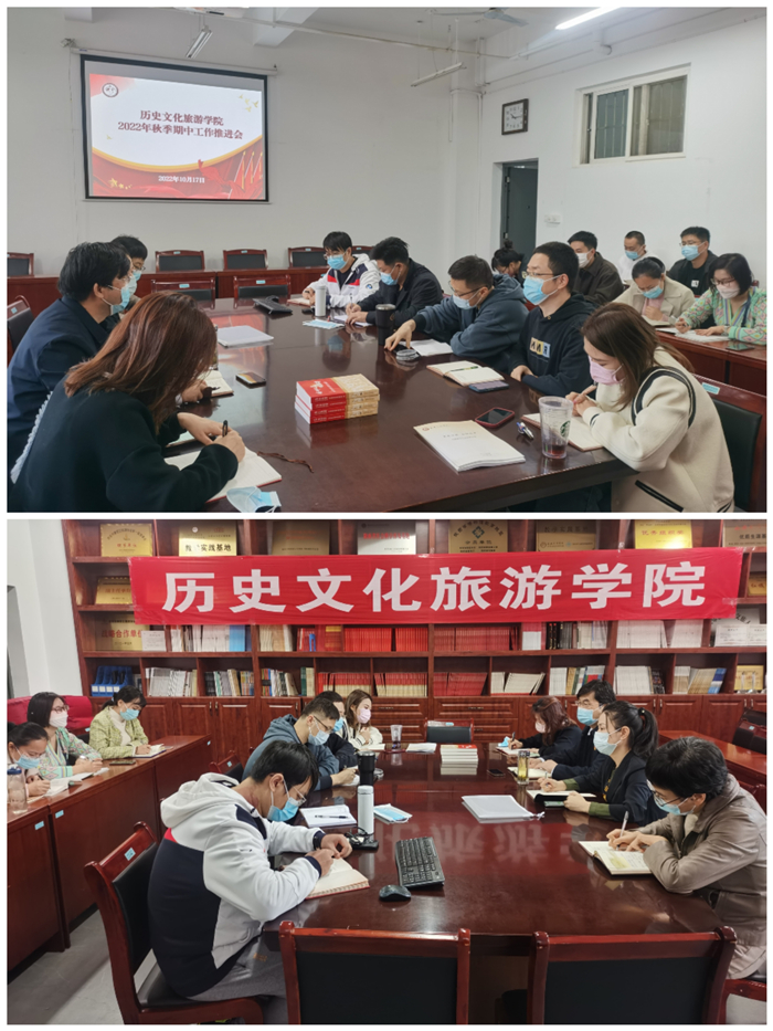 10月17日上午,历史文化旅游学院召开2022年秋季期中工作推进会,学院领导班子成员、防疫专班成员、行政工作人员参加会议,会议由院长张天社主持。 会议通报了学校疫情封闭管理政策和学院驻校专班工作情况,安排了学院...