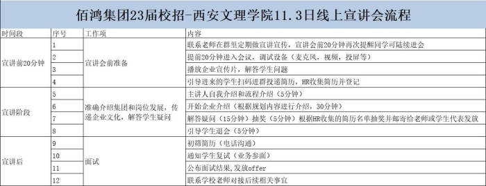11月3日晚,化学工程学院和生物与环境工程学院共同邀请佰鸿集团(西安)通过腾讯会议成功举办了生化专场线上校园宣讲会。化学工程学院党总支副书记张亚环、就业专责辅导员张纹,生物与环境工程学院学工办主任白丽,佰...