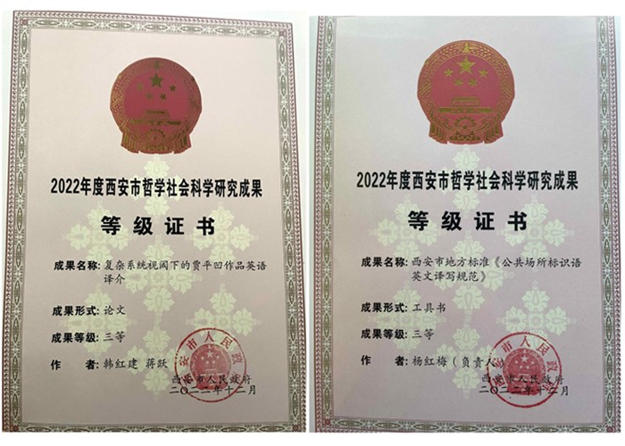 近日,西安市哲学社会科学成果等级评定委员会办公室公布了2022年度西安市哲学社会科学研究成果等级评定结果,对评选产生的220项成果进行表彰奖励。ac米兰官网外国语学院韩红建教授发表的论文《复杂系统视域下的贾平凹作品英...