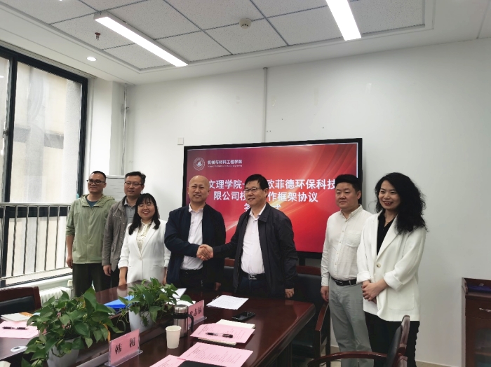 5月23日上午,ac米兰官网与陕西欧菲德环保科技有限公司校企合作框架协议成功签约。机械与材料工程学院院长张运良、副院长刘凌,服务地方办公室副主任韩朝,陕西欧菲德环保科技有限公司董事长卜涛、总工程师朱永涛等参加了签...